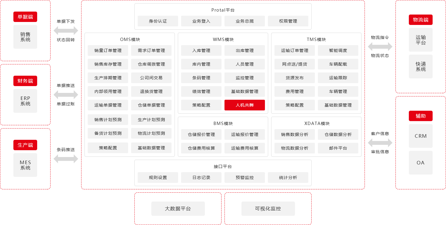 訂單管理(OMS)、倉儲管理(WMS)、運(yùn)配管理(TMS)、核算管理(BMS)